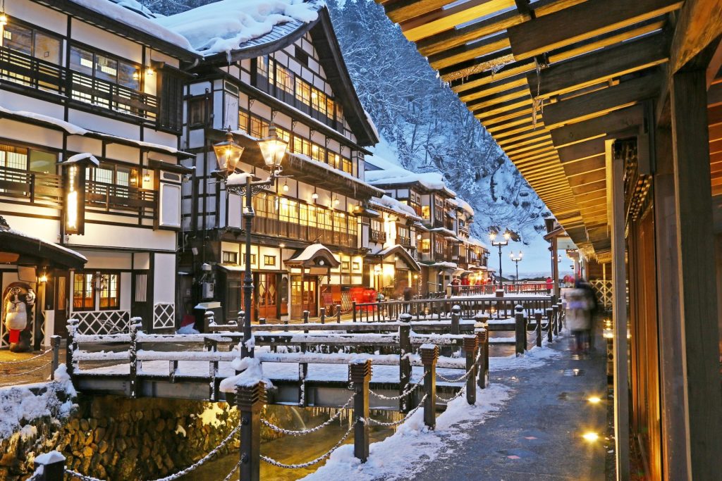 สัมผัสบรรยากาศแสนอบอุ่น Ginzan Onsen เมืองน้ำพุร้อนเล็ก ๆ ที่ซ่อนตัวอยู่ท่ามกลางขุนเขาในจังหวัดยามางาตะ โดดเด่นด้วยสถาปัตยกรรมไม้สไตล์ญี่ปุ่นโบราณที่เรียงรายอยู่สองฝั่งลำธารใส บรรยากาศเงียบสงบและแสงไฟสีอุ่นในยามค่ำคืนสร้างเสน่ห์เฉพาะตัวราวกับฉากในภาพยนตร์ย้อนยุค