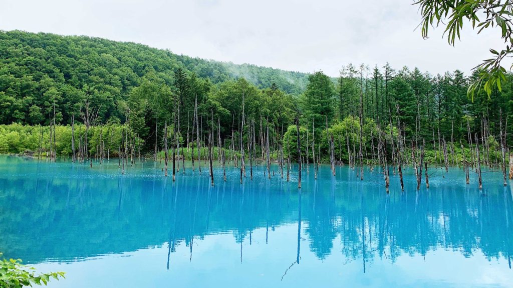 จากนั้นนำท่านเดินทางสู่ บ่อน้ำสีฟ้า เกิดจากอ่างน้ำที่มนุษย์สร้างขึ้นในปี 1988 เพื่อป้องกันโคลนไหลมาจากภูเขาไฟ Tokachi แต่กลายเป็นแหล่งท่องเที่ยวชื่อดังจาก “สีฟ้ามรกต” อันน่าประหลาดที่สวยงามตระการ