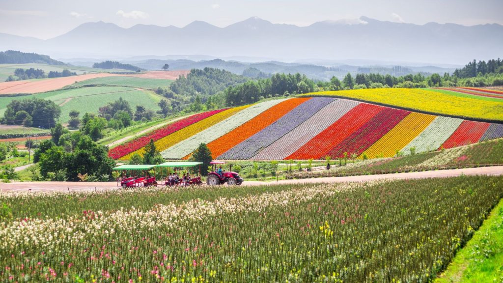 นำท่านชม Shikisai‑no‑Oka คือสวนดอกไม้บนเนินสูงในเมือง Biei, Hokkaido ตั้งอยู่บนพื้นที่ประมาณ 15 เฮกตาร์ (150,000 ตร.ม.) กลายเป็นสวรรค์ของดอกไม้กว่า 30 สายพันธุ์ เรียงแถวสวยงามเป็นริบบิ้นหลากสีบนเนินเขา โดยทุ่งดอกไม้หลากสีจะบานตามฤดูดังนี้ เริ่มกับทิวลิป ในต้น–กลางพ.ค. ต่อด้วย ลาเวนเดอร์, ซัลเวีย, ดอกป๊อปปี้, ดอกทานตะวัน, ดาห์เลีย ช่วงมิ.ย.–ก.ย. แต่งแต้มด้วยดอกไม้ปลายฤดูใบไม้ร่วง เช่น มาริโกลด์, จินเนีย ต.ค.–พ.ย. ฤดูกาลดอกไม้อาจมีการเปลี่ยนแปลงตามสภาพอากาศ