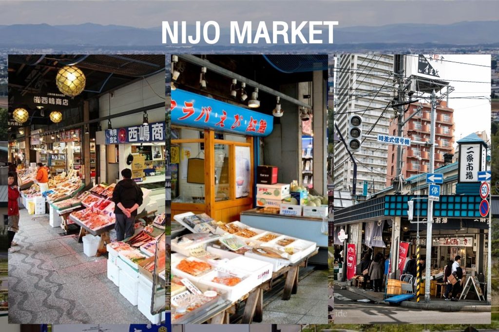 นำท่านสู่ ตลาดนิโจ ตลาดแห่งนี้เป็นตลาดเก่าแก่ที่มีอายุเป็นร้อยปี ภายในตลาด มีสินค้าที่เน้นไปที่ผลผลิตในท้องถิ่น และอาหารทะเลสดๆไม่ว่าจะเป็น ปู ไข่ปลาแซลมอน หอยเม่นทะเล และปลาทะเลสดๆ ร้านอาหารต่างๆจะเป็นที่สำหรับรับประทานอาหาร และดื่มรวมกัน ตั้งอยู่ตามตรอกแคบๆ ที่เรียกว่า “Noren Yokocho” อาหารที่เป็นที่นิยมมากที่สุดคือ Uni ikura donburi ซึ่งก็เป็นข้าวเสิร์ฟพร้อมกับหอยเม่นทะเลสด ๆ