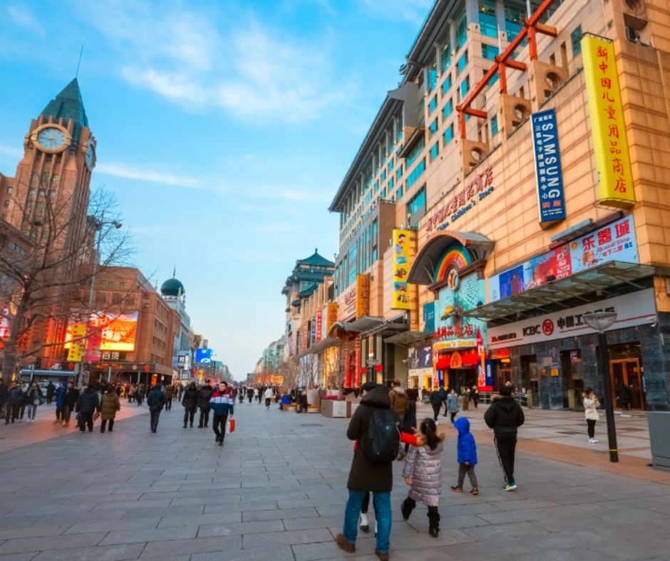 เพลิดเพลินไปกับ ถนนคนเดินหวังฝูจิ่ง 1 ใน 4 ย่านการค้าหลักกรุงปักกิ่ง อิสระให้ท่านซื้อของกิน ของฝากราคาถูก คำว่า หวังฝูจิ่ง แปลว่า บ่อน้ำของตำหนักท่านอ๋อง มีตำนานเล่าว่า เป็นบ่อน้ำวิเศษทั้งมีน้ำมากและรสชาติหวาน ครั้นปักกิ่งเกิดภัยแล้ง ท่านอ๋องก็อนุญาตให้ชาวบ้านมาใช้น้ำจากบ่อนี้ได้ ชื่อเสียงหวังฝูจิ่งจึงขจรขจาย