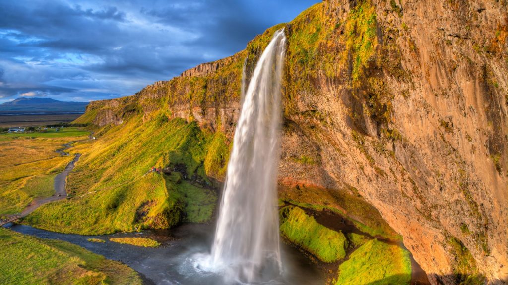 นำท่านชม Seljalandsfoss เป็นน้ำตกที่สวยงามในไอซ์แลนด์ ตั้งอยู่ใกล้กับทางหลวงหมายเลข 1 น้ำตกนี้มีความสูงประมาณ 60 เมตร และที่พิเศษคือสามารถเดินไปข้างหลังน้ำตกได้ ทำให้ผู้เยี่ยมชมได้สัมผัสประสบการณ์ที่ไม่เหมือนใคร การมองเห็นน้ำตกจากมุมด้านหลังทำให้ได้ภาพวิวที่งดงามและน่าประทับใจ