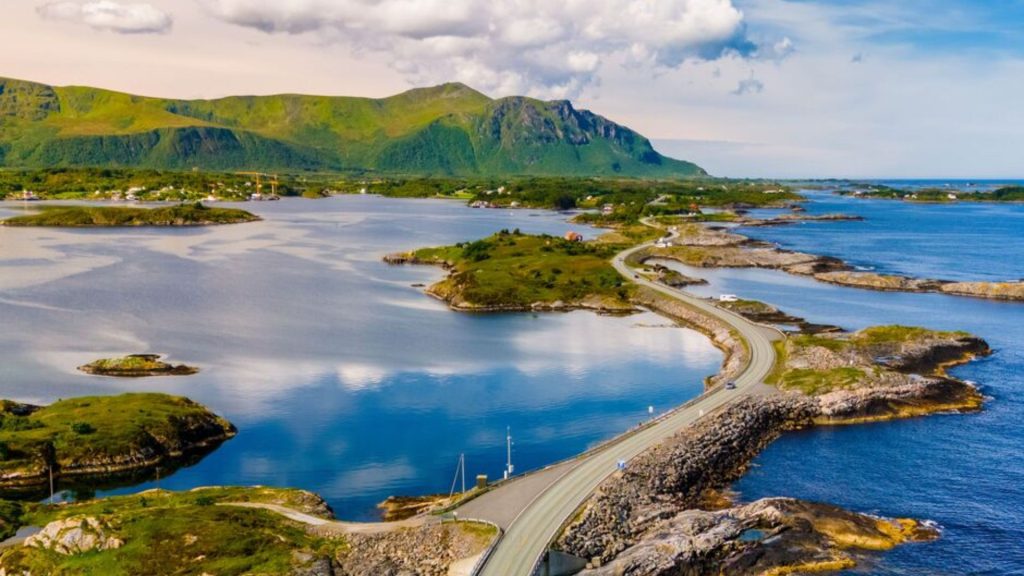 นำท่านเดินทางสู่ The Atlantic Ocean Road คือหนึ่งในถนนที่มีทัศนียภาพสวยงามและน่าตื่นตาที่สุดในโลก ถนนสายนี้ทอดยาวไปตามชายฝั่งทะเลนอร์เวย์ตะวันตกเฉียงเหนือ เชื่อมต่อหมู่เกาะเล็ก ๆ เข้าด้วยกันราวกับเป็นสะพานลอยน้ำข้ามมหาสมุทรแอตแลนติก