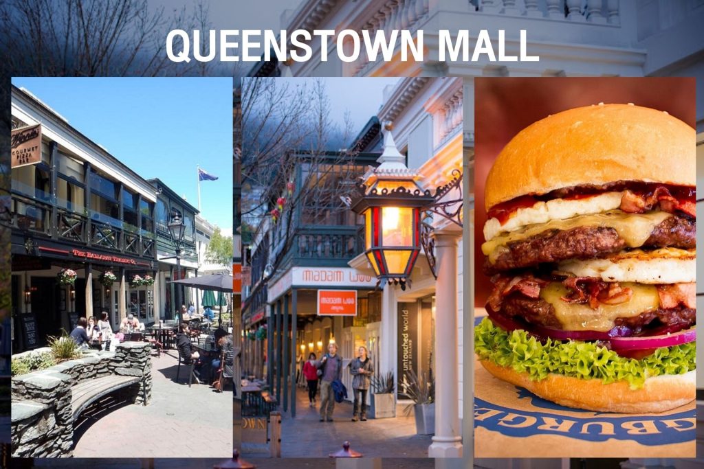 ให้อิสระท่านในการเดินช็อปปิ้งที่ควีนส์ทาวน์มอลถือเป็นถนนที่พลุกพล่านที่สุดในควีนส์ทาวน์ถนนสายนี้ทอดยาวจากชายฝั่งทะเลสาบไปจนถึงภูเขาเรียงรายไปด้วยร้านค้าและร้านอาหารมากมาย และเนื่องจากถนนสายนี้เป็นทางเดินเท้าเท่านั้น ผู้มาเยือนจึงสามารถเดินเล่นที่นี่ได้อย่างสบายๆ มีร้านขายของที่ระลึกเรียงรายอยู่บนถนนย่านการค้า และร้านค้าต่างๆ ก็มีสินค้าที่แตกต่างกันออกไป และไม่ควรพลาดไปกับ แฮมเบอร์เกอร์ชื่อดังของเมืองควีนส์ทาวน์ “Fergburger”